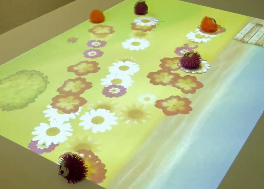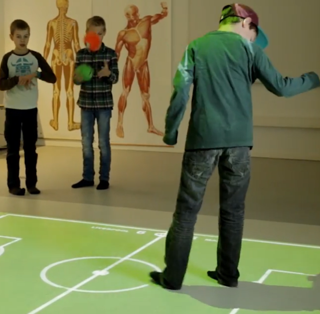 - The content is projected onto the floor using a projector.